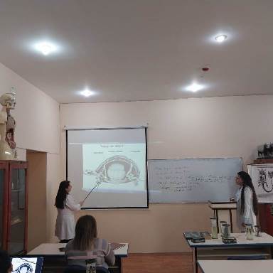Anatomiya, fiziologiya və zoologiya kafedrasının dosenti Lalə Abdullayevanın Biologiya ixtisasının II kursunda “Onurğalı heyvanlar” fənnindən “Amniotların səciyyəvi xüsusiyyətləri. Sürünənlərin morfologiyası, fiziologiyası, müasir təsnifatı. Mühüm dəstələrinə aid növlərin həyat tərzi, təbiətdə yayılması” mövzusunda açıq dərs keçirildi. Müəllimənin bütün sənədləri qaydasında idi. Dərs müasir təlim metodları üzərində qurulmuşdu. Dərsin izahında müəllim slaydlardan və əyani vəsaitlərdən-reptililərin skeleti, sürünənlərin daxili və xarici quruluşuna aid sulu (formalində olan) preparatlardan istifadə etdi. Dərsdə tələbələr fəal iştirak etdilər. Müəllimə mövzunu tam əhatəli, plana uyğun olaraq, maraqlı və əvvəlki dərslə əlaqəli şəkildə izah etdi. Açıq dərsdə kafedra müdiri prof.V.Məmmədova və kafedra əməkdaşları iştirak etdilər. Dərs tələbələr tərəfindən tam mənimsənildi.
