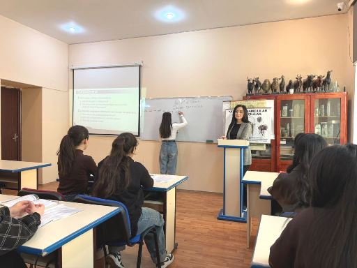 Praktik xarici dillər kafedrasının baş müəllimi, f.f.d. Rüstəmova İlhamə Saleh qızının Kimya və biologiya müəllimliyi ixtisasının I kursunda “Dream commuters” mövzusunda açıq dərs keçirildi. Mövzunun təqdimatı DVD-materialı izləməklə başladı, əyani vəsaitlərdən və interaktiv təlim metodlarından geniş şəkildə istifadə edilərək mövzuya aid məlumat verildi. Müasir dövrdə əhalisi çox olan böyük şəhərlərdəki sərnişin problemlərinə aid məlumatlar izlənildi. Mövzunun interaktiv şəkildə izlənilməsi tələbələrin dərsdə fəal iştirakına və marağına səbəb oldu. Sonda sorğu keçirildi və yeni sözlərin izahı verildi. Ev tapşırığı və qiymətləndirmə ilə dərs yekunlaşdırıldı.