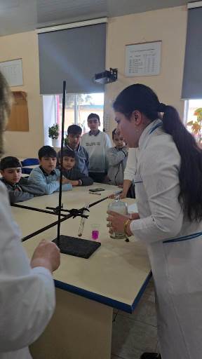 Kimya kafedrasının müdiri dos. Aynur Məmmədova qonaqları qarşılayaraq onlara kafedradakı tədris və elmi-tədqiqat laboratoriyaları, tədris auditoriyaları və ixtisaslar haqqında məlumat verdi. Sonra kafedranın baş müəllimi Sevinc Zeynalova, müəllim İlahə Tağılı şagirdlərə kimya laboratoriyalarında “Asetilenin sintezi və xassələri”, “Benzolun kimyəvi xassələri”, “Buqələmun reaksiyası”, “Qızıl yağışı” və s. təcrübələri nümayiş etdirərək izahlar verdilər.